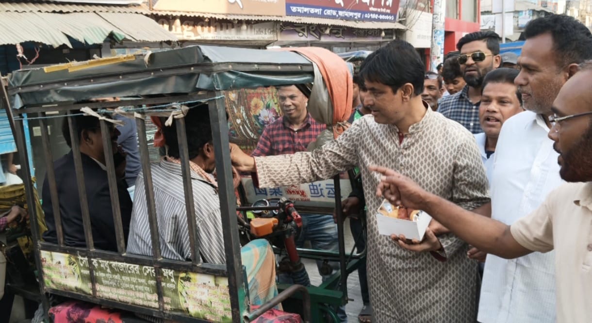 মঙ্গলবার (১৭ ফেব্রুয়ারি) বিকেলে শহরের সকাল বাজার, তমালতলাসহ বিভিন্ন এলাকায় সাধারণ মানুষের মাঝে মিষ্টি বিতরণ করেন।