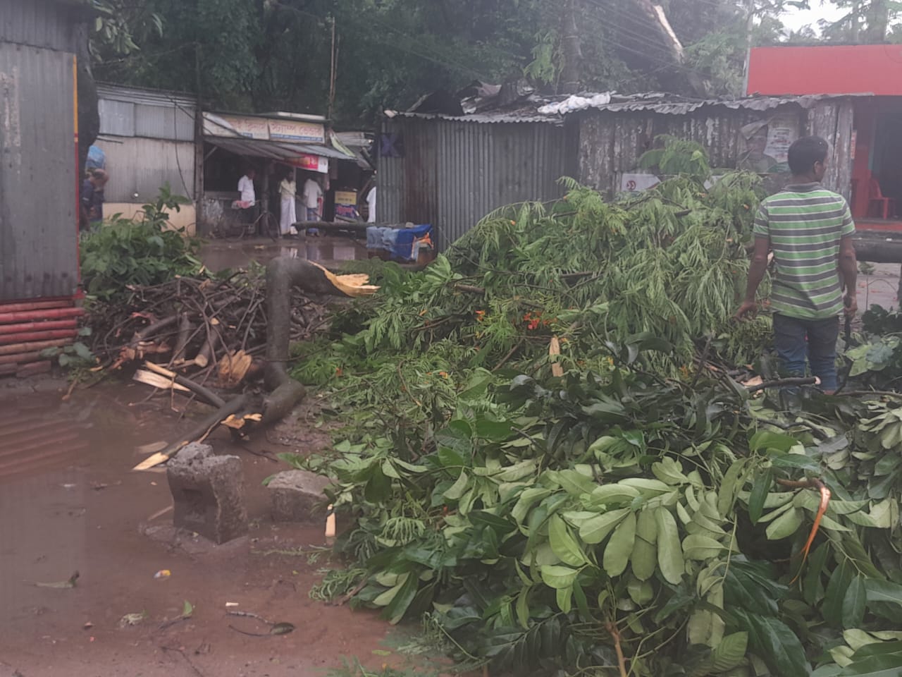 কুড়িগ্রাম সদর উপজেলার কাঁঠাল বাড়ি ইউনিয়নের শিবরাম রাঙ্গাতিপাড়া গ্ৰামের খোকন আলী বলেন গতরাতের হুরকা তুফানে গাছ ভাঙ্গি টিনের চালের উপর পরে ,