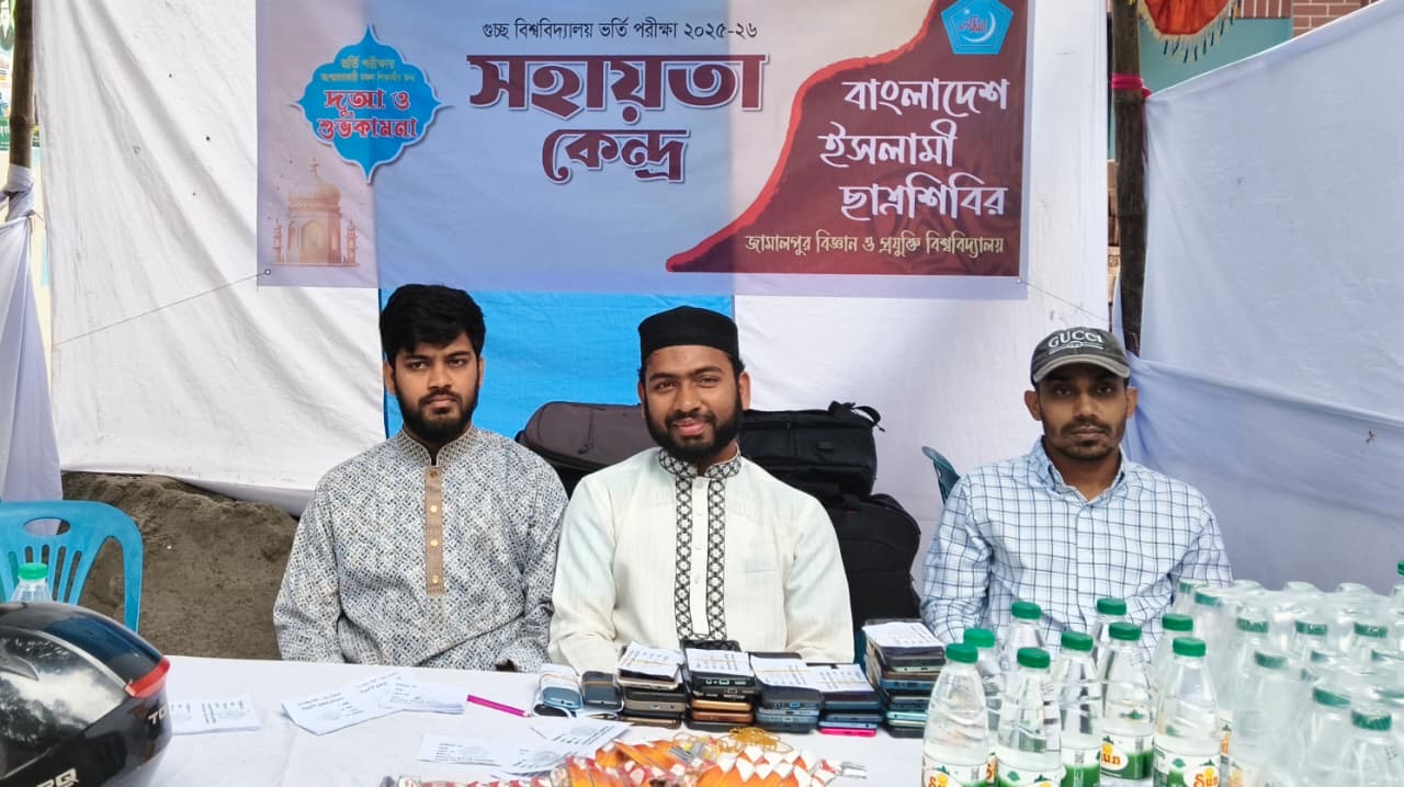 শিক্ষার্থীদের সুবিধায় বাংলাদেশ ইসলামী ছাত্রশিবির জাবিপ্রবি শাখা হেল্প ডেস্কে তথ্য সহায়তা প্রদান,ব্যাগ-ইলেক্ট্রনিক ডিভাইস রাখার ব্যাবস্থা এবং বিনামুল্যে সুপেয় পানির আয়োজন করে।