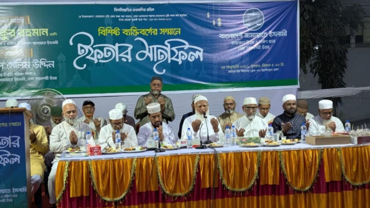 এ সময় জামায়াত ঘোষিত ট্যাক্সমুক্ত গাড়ি ও সরকারি প্লট গ্রহণ না করা এবং প্রবাসীদের লাশ সম্মানের সঙ্গে দেশে আনার প্রতিশ্রুতি অনুসরণ করায় সরকারি দলকে ধন্যবাদ জানান তিনি। অনুষ্ঠানে সভাপতির বক্তব্যে জামায়াতের কেন্দ্রীয় নির্বাহী পরিষদ সদস্য ও ঢাকা মহানগর উত্তরের আমির মোহাম্মদ সেলিম উদ্দিন বলেন, ইসলামকে পরিপূর্ণভাবে মানতে হলে ইসলামকে রাষ্ট্রীয়ভাবে প্রতিষ্ঠা করতে হবে। জামায়াত শুধু বিরোধিতার জন্য বিরোধিতা নয়, বরং সংসদে একটি অর্থপূর্ণ বিরোধীদল হিসেবে ভূমিকা রাখবে। মহানগরী মজলিশে শুরা সদস্য মু. আবু নাহিদ ও মো. আশিকুর রহমানের যৌথ সঞ্চালনায় অনুষ্ঠানে আরও উপস্থিত ছিলেন কেন্দ্রীয় কর্মপরিষদ সদস্য ও ঢাকা মহানগর উত্তরের নায়েবে আমির আব্দুর রহমান মুসা, বাংলাদেশ শ্রমিক কল্যাণ ফেডারেশনের কেন্দ্রীয় সহ-সভাপতি লস্কর মোহাম্মদ তসলিম, মহানগরী কর্মপরিষদ সদস্য মো. শহীদুল্লাহ, উপাধ্যক্ষ মু. আনোয়ারুল করিম, মো. রেজাউল করিমসহ অনেকে। ইফতার মাহফিলে সমাজের গণ্যমান্য ব্যক্তিসহ সহস্রাধিক মানুষ অংশ নেন।